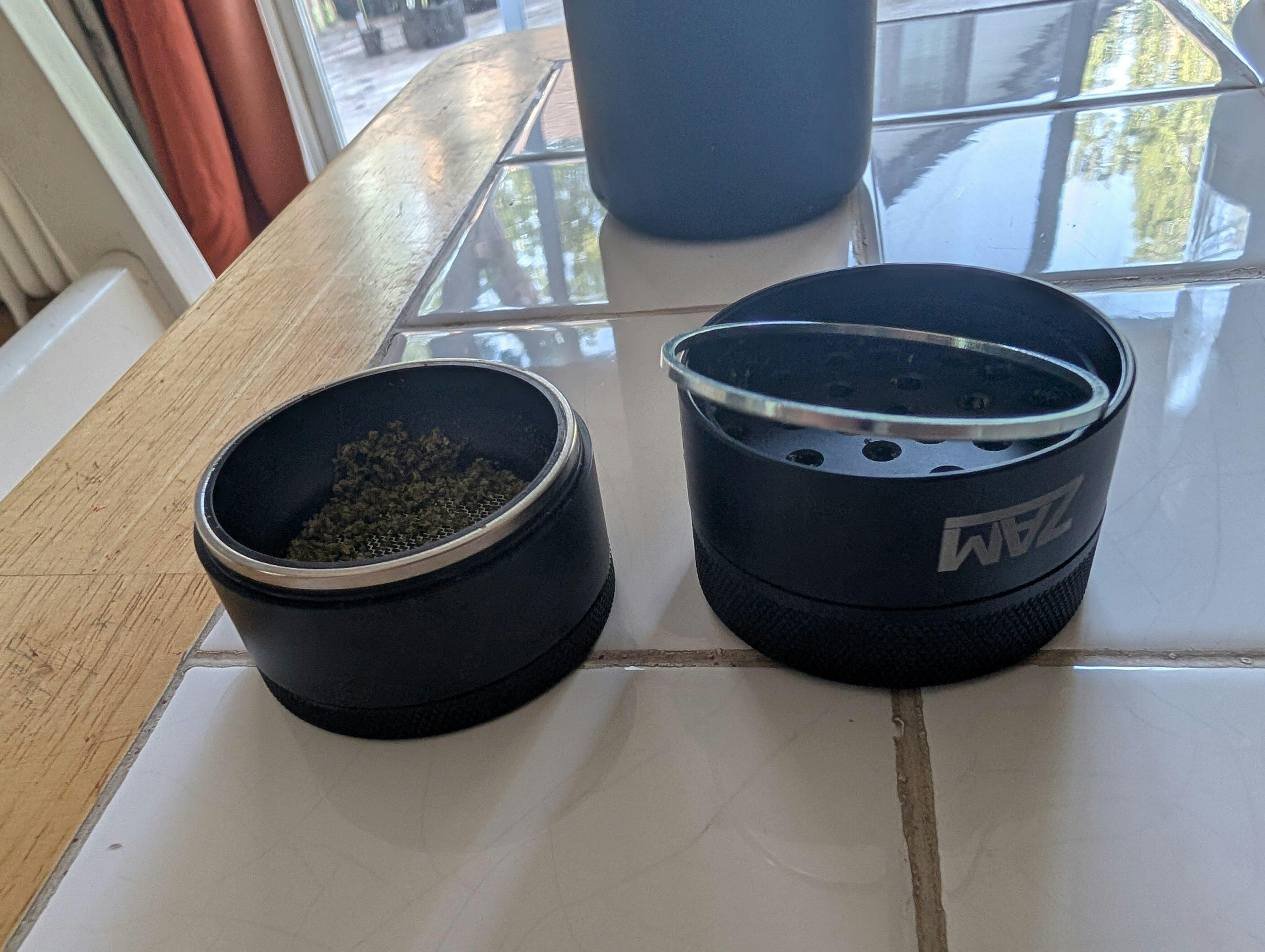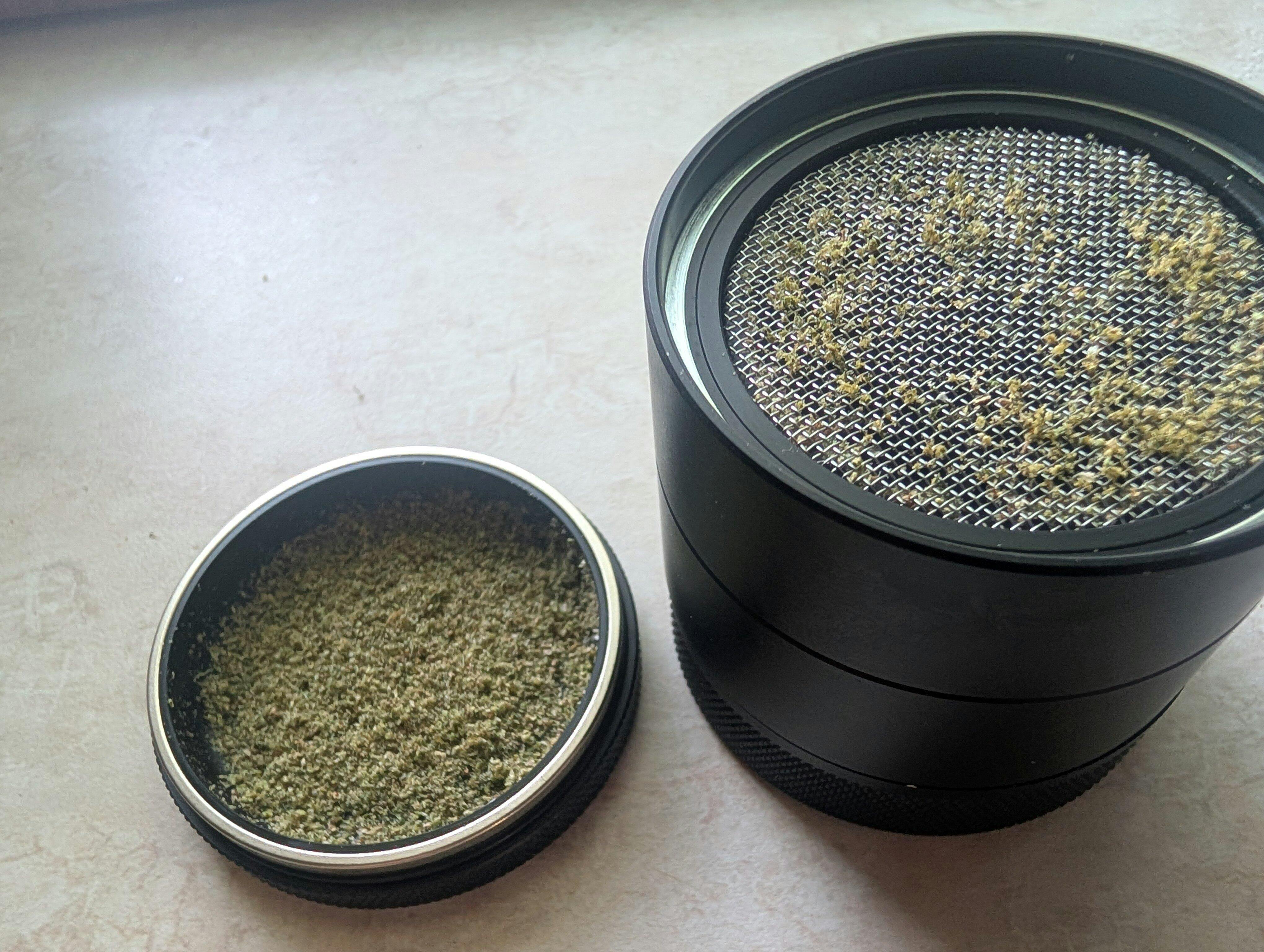 It also grinds very fine, without turning upside down. Not ideal, I like a loose grind for joints that is hard to achieve with this grinder. It just pulverizes your nugs and then sends all of your trichomes through the enormous mesh that is not 60 microns.